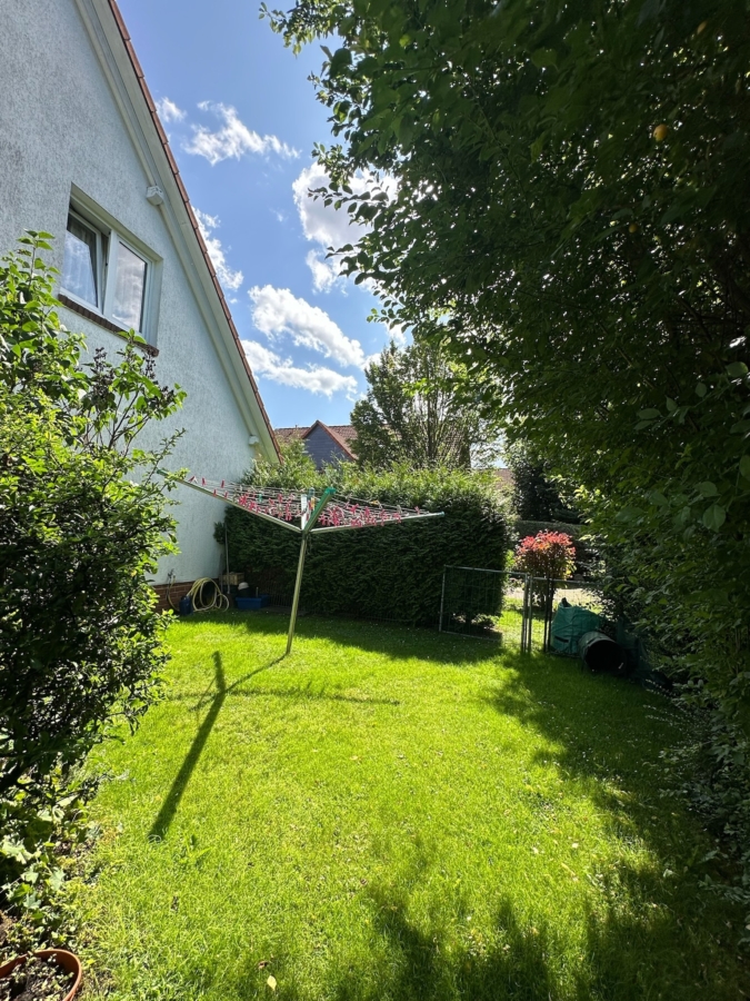 Das Grundstück umfasst 625 m² und verfügt über einen pflegeleichten Garten mit Rasenfläche, Ziergräsern und einem alten Baumbestand.