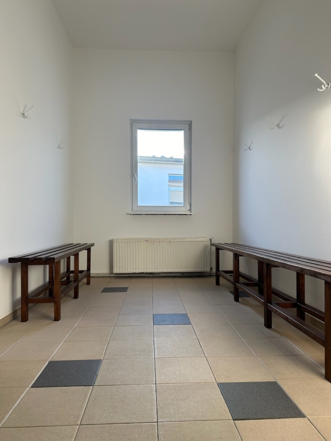 • mit Empfang, Büro, Sozialräumen, Umkleide, Dusche und Küche